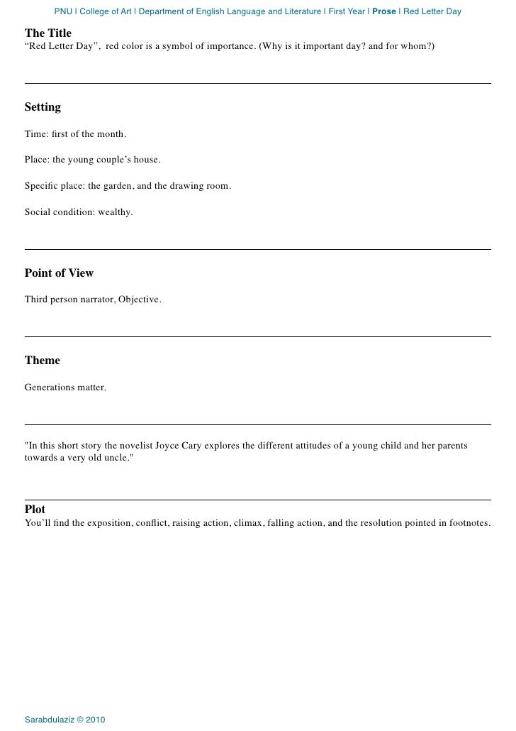 Red Letter Day Joyce Cary. I can use the phrase, now that I understand its origin. Department of English Language and Literature